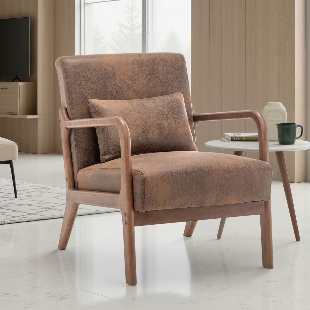 Faux Leather Suede Brown Hertford Accent Chair