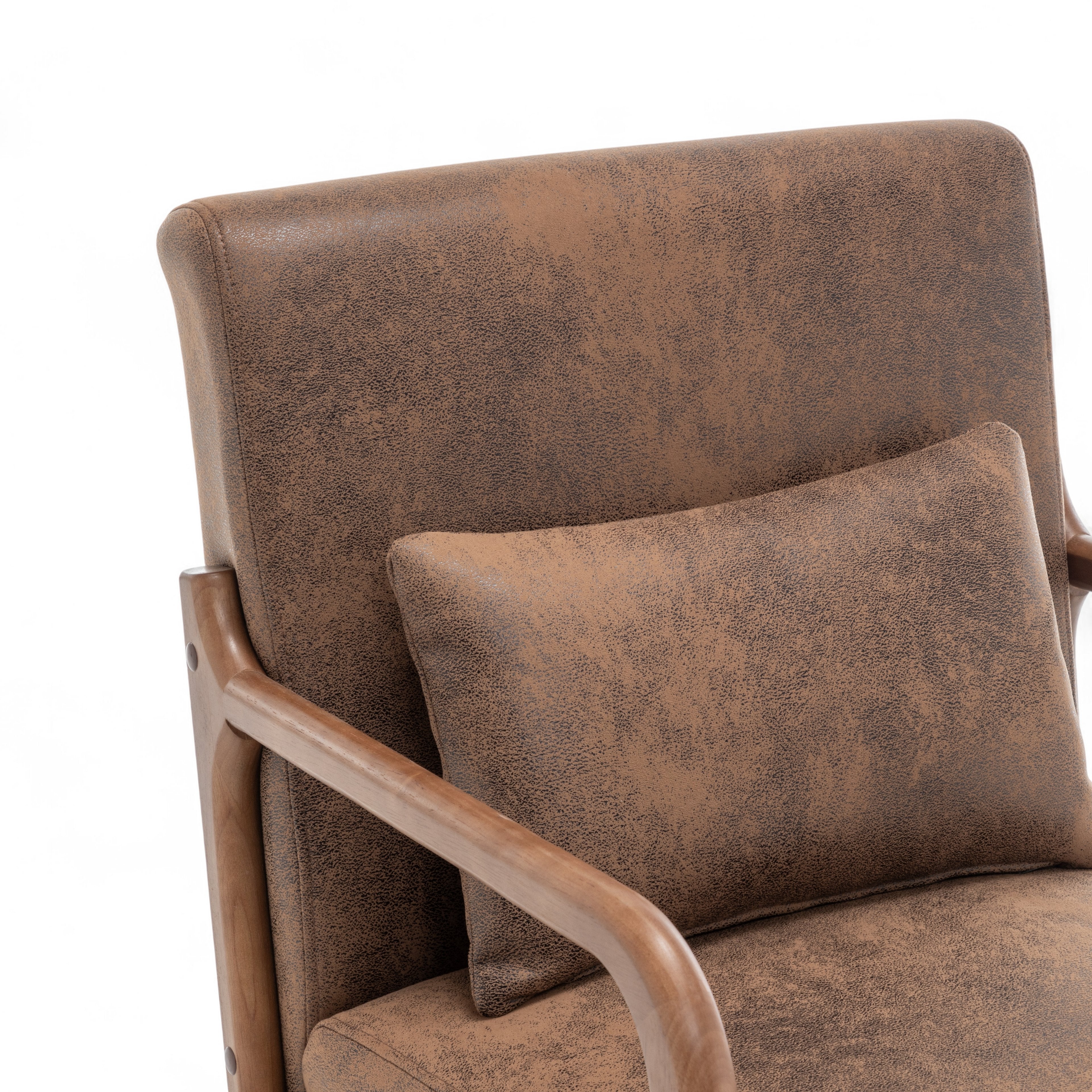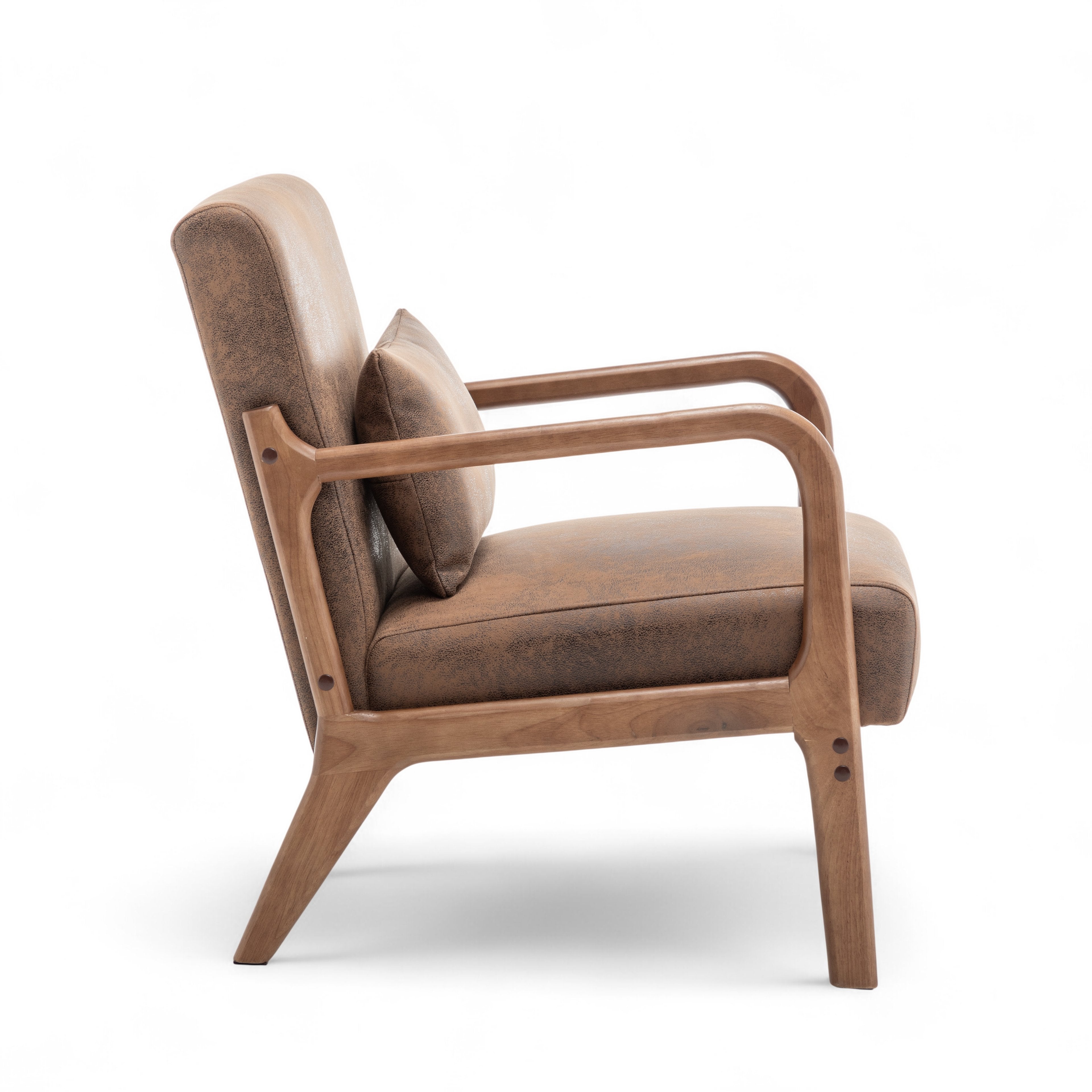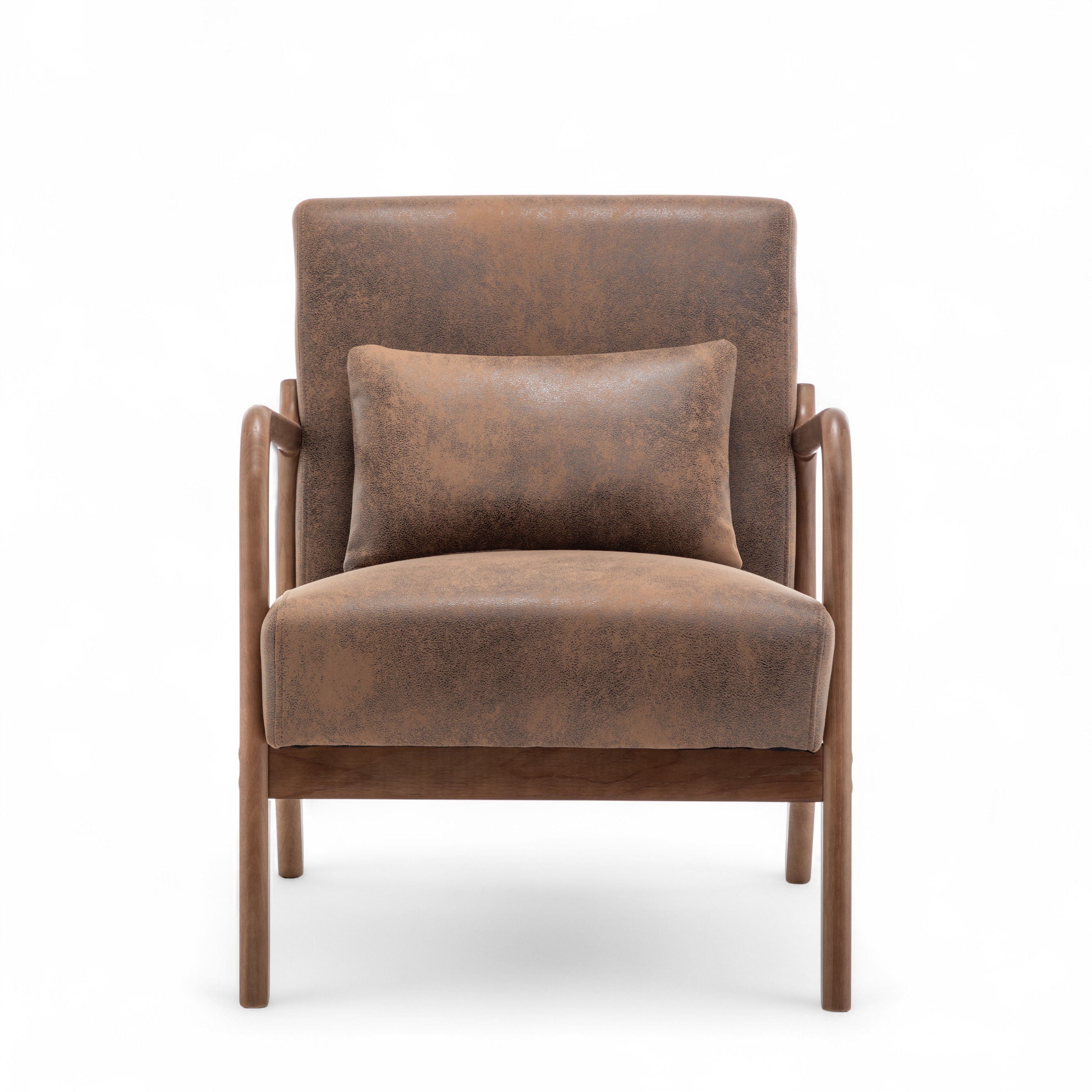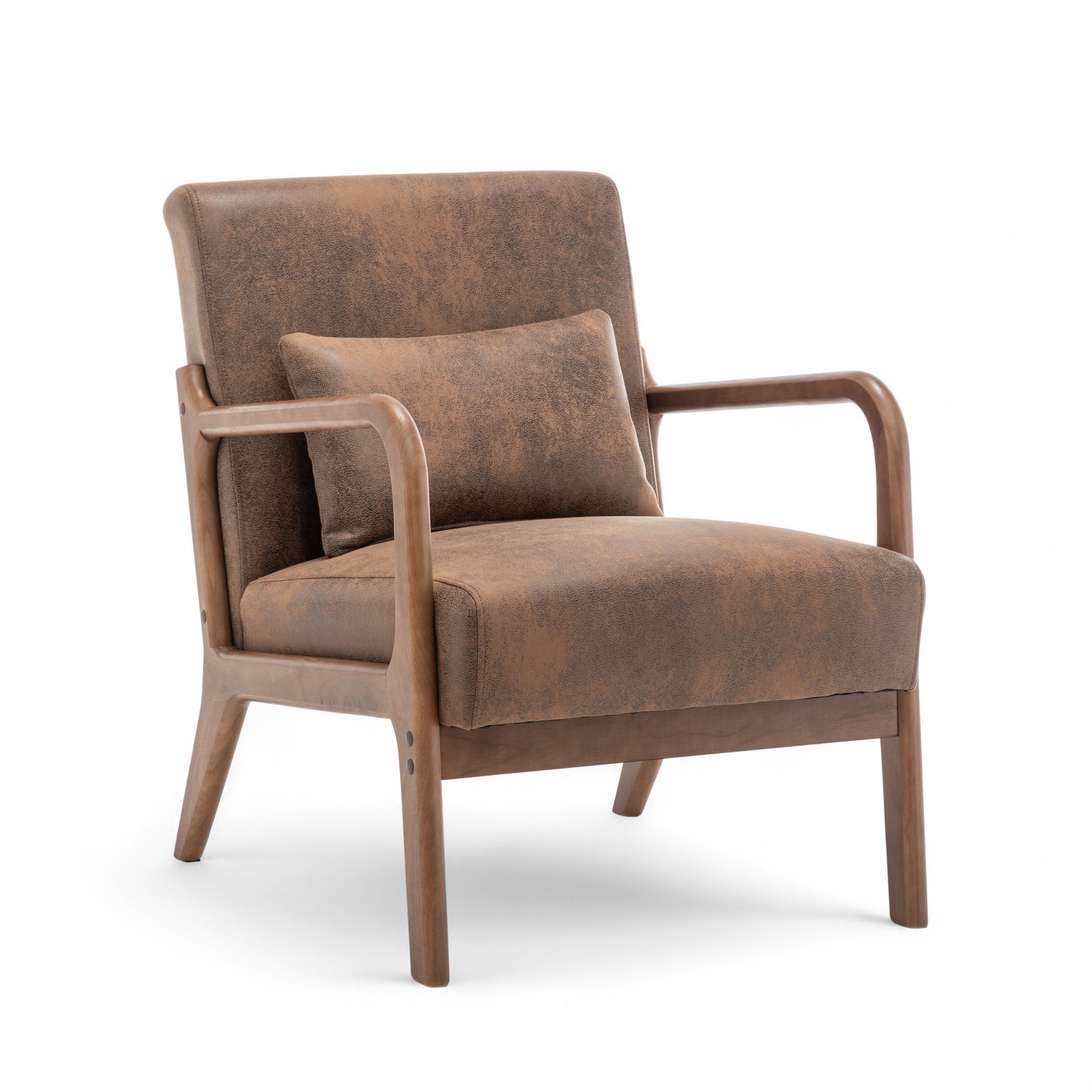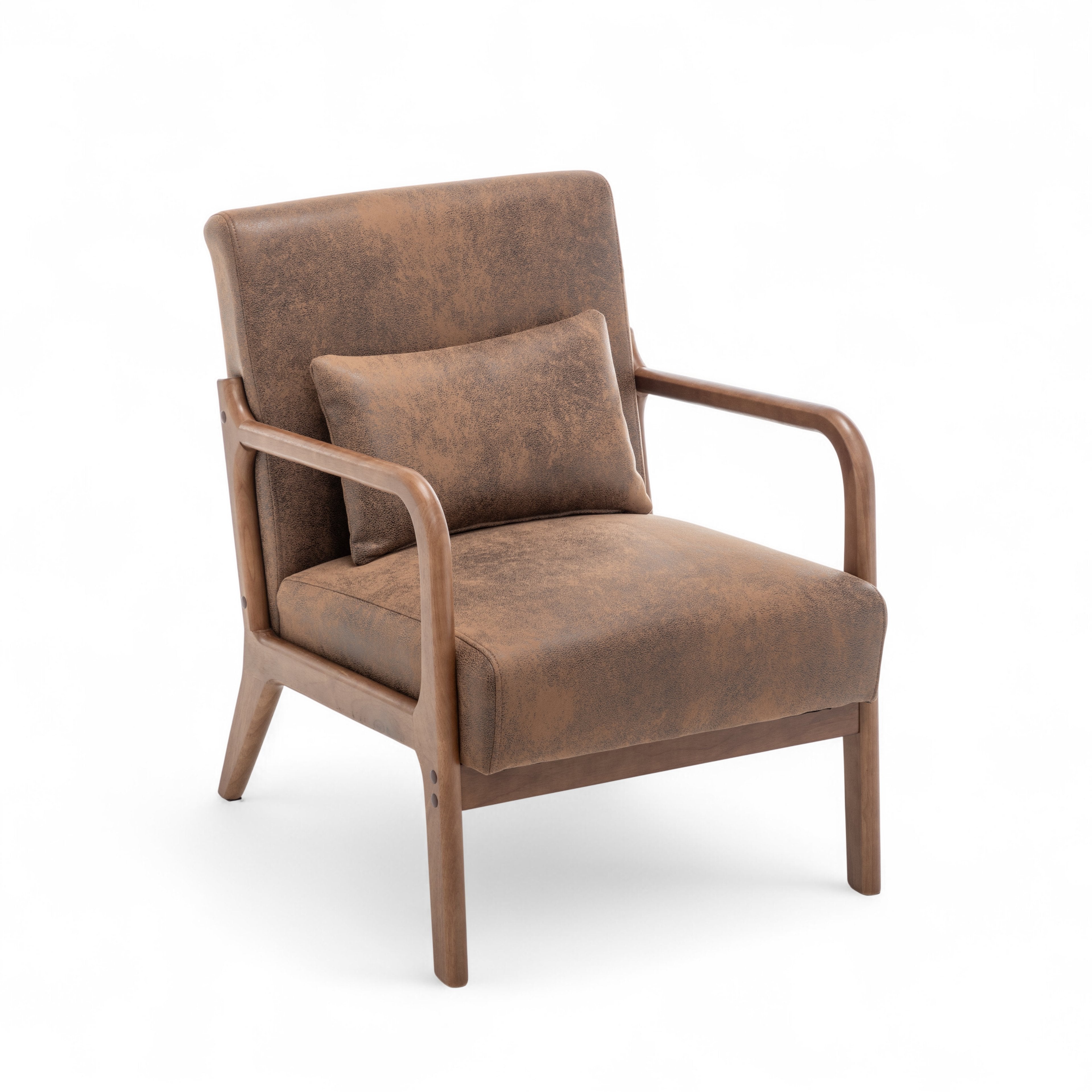 The Faux Leather Suede Brown Hertford Accent Chair is perfect to use as an accent chair or occasional seating option in any room. It is sure to catch the eye of guests, and works well in both modern and traditional settings thanks to its versatile design and simple silhouette. The suede finish of the upholstery adds a textured look to the piece, adding further visual interest to the piece. The accent cushion is included with the chair.