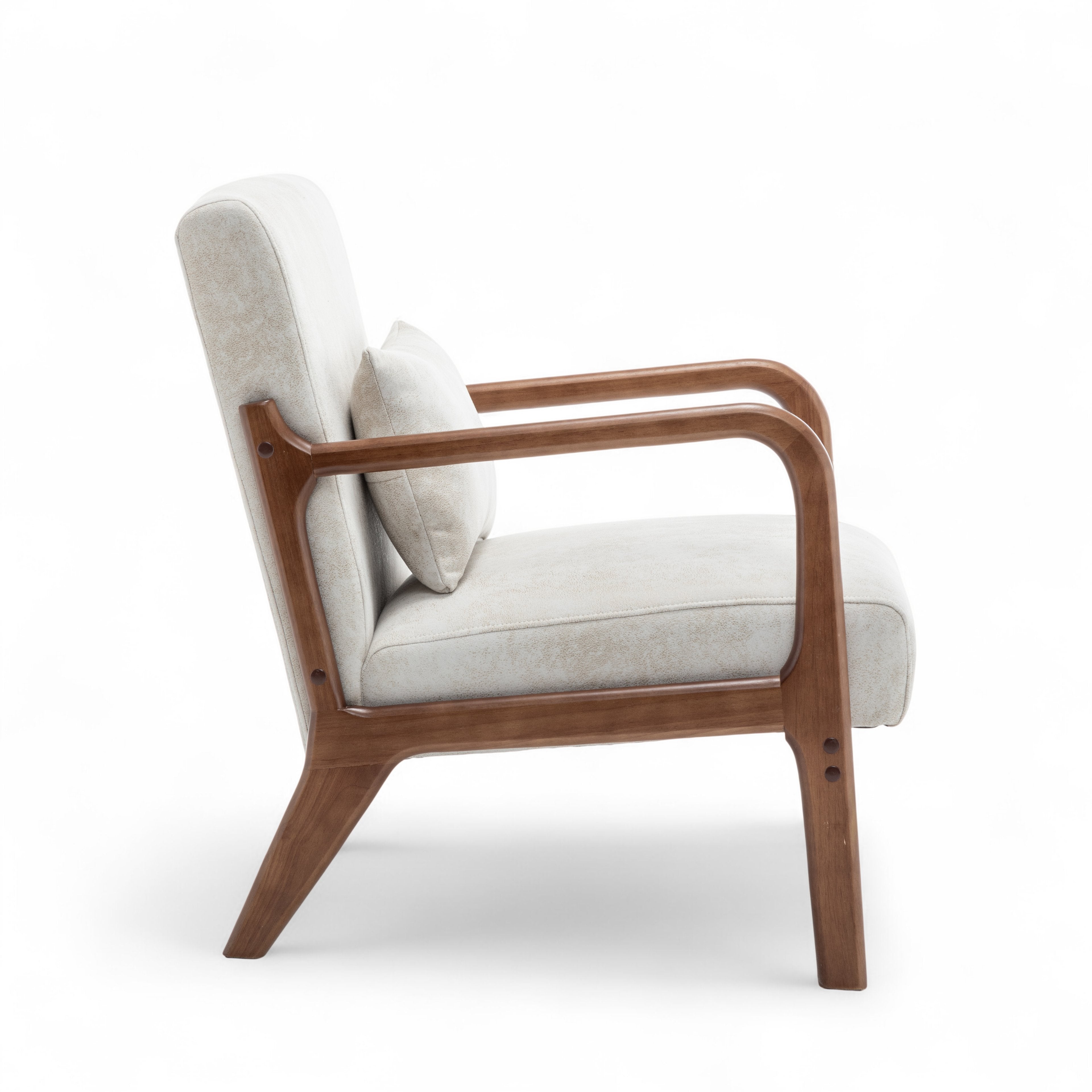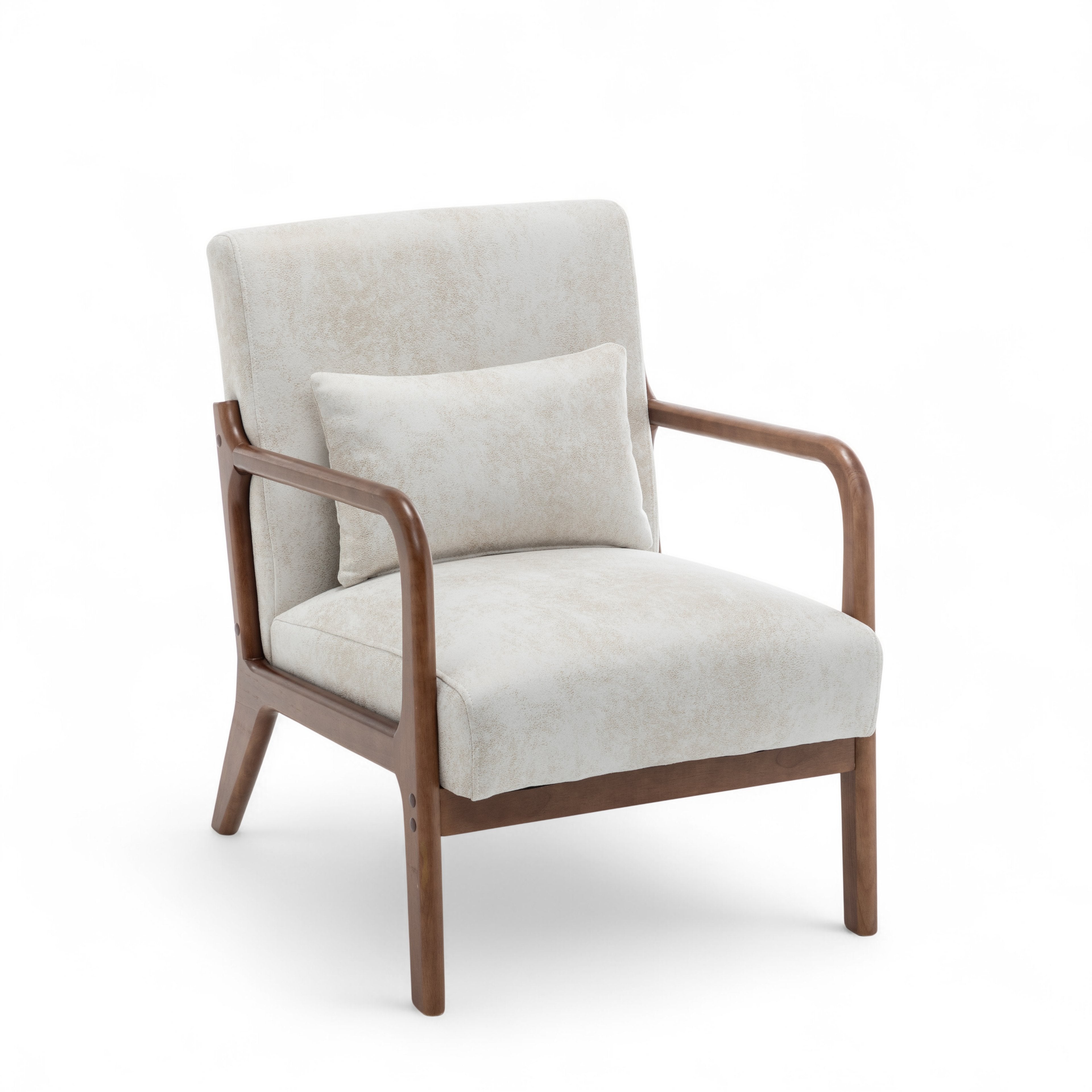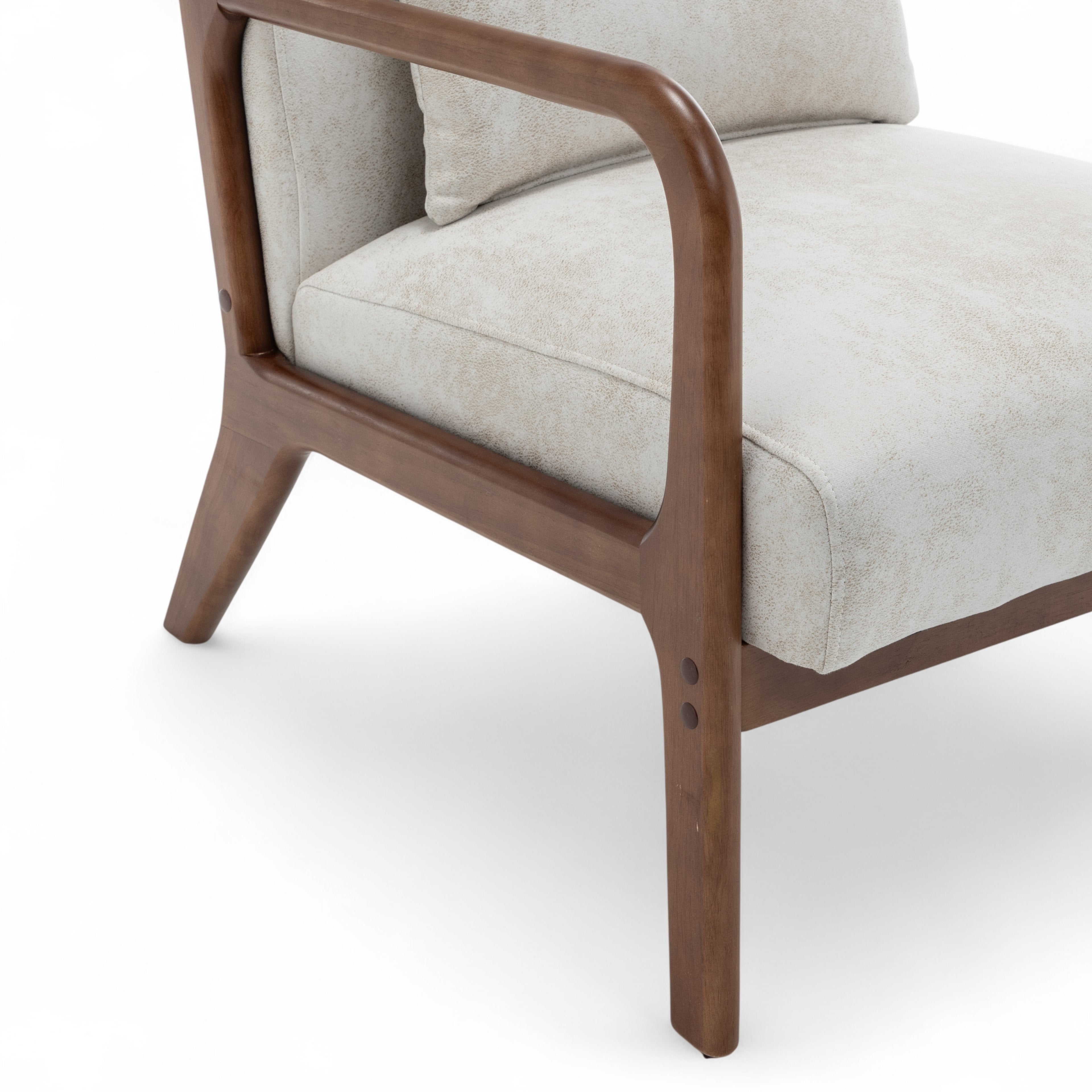 The Faux Leather Suede Cream Hertford Accent Chair is perfect to use as an accent chair or occasional seating option in any room. It is sure to catch the eye of guests, and works well in both modern and traditional settings thanks to its versatile design and simple silhouette. The suede finish of the upholstery adds a textured look to the piece, adding further visual interest to the piece. The accent cushion is included with the chair.