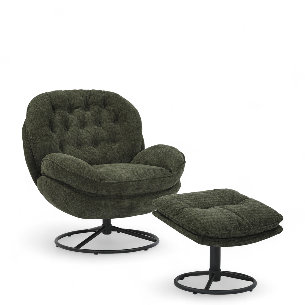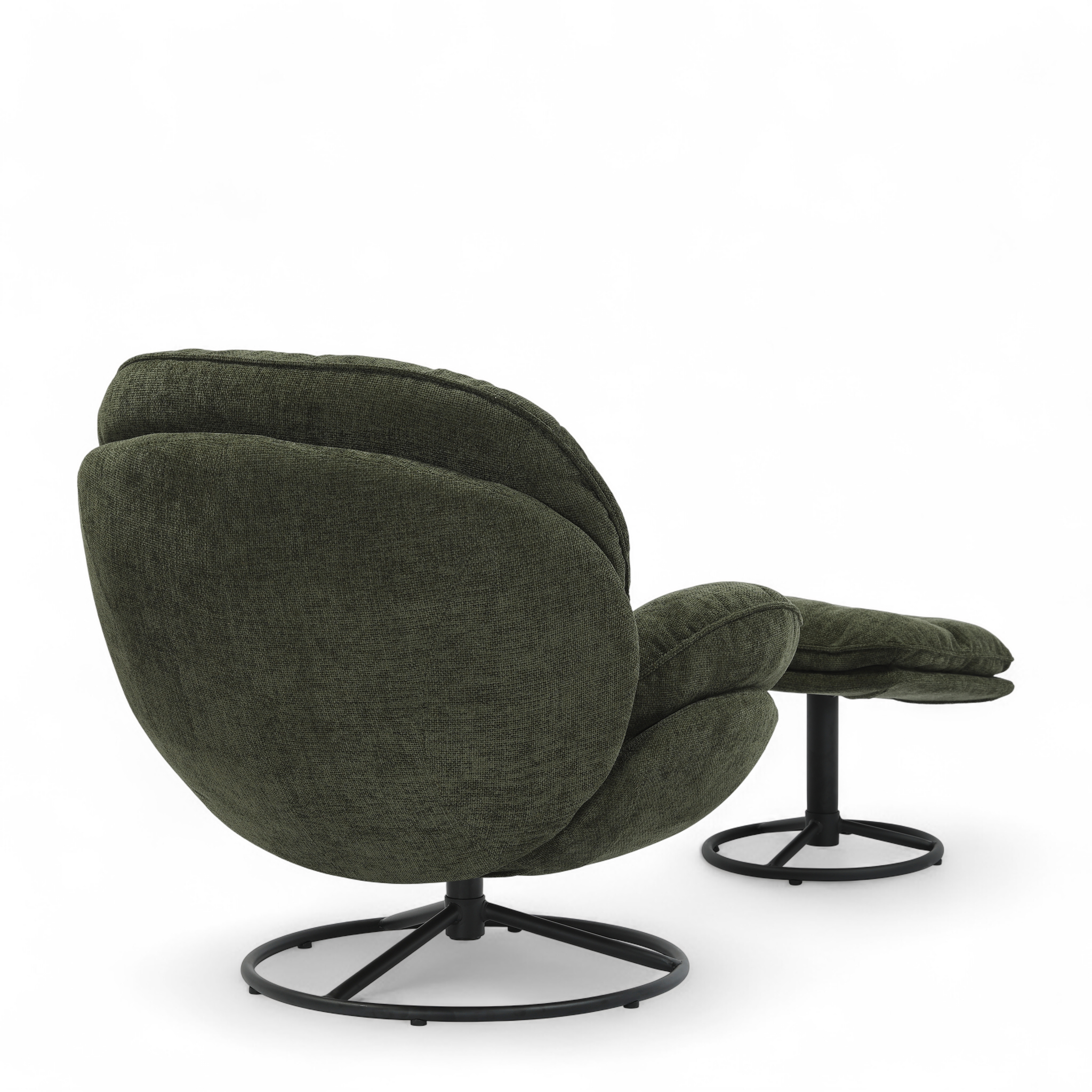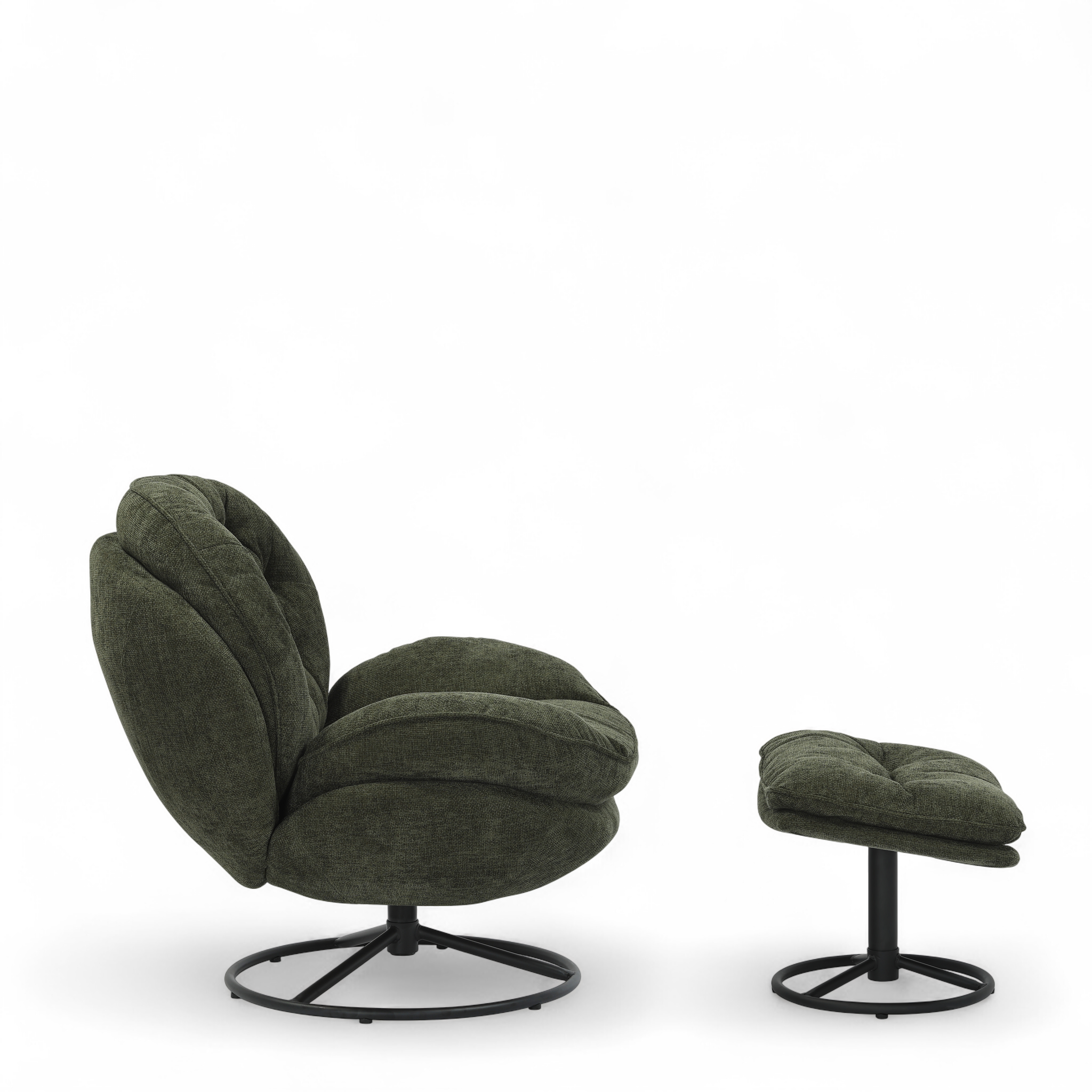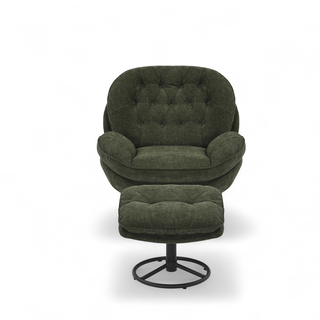 Green Chenille Fabric Azura Swivel Accent Chair with Footstool