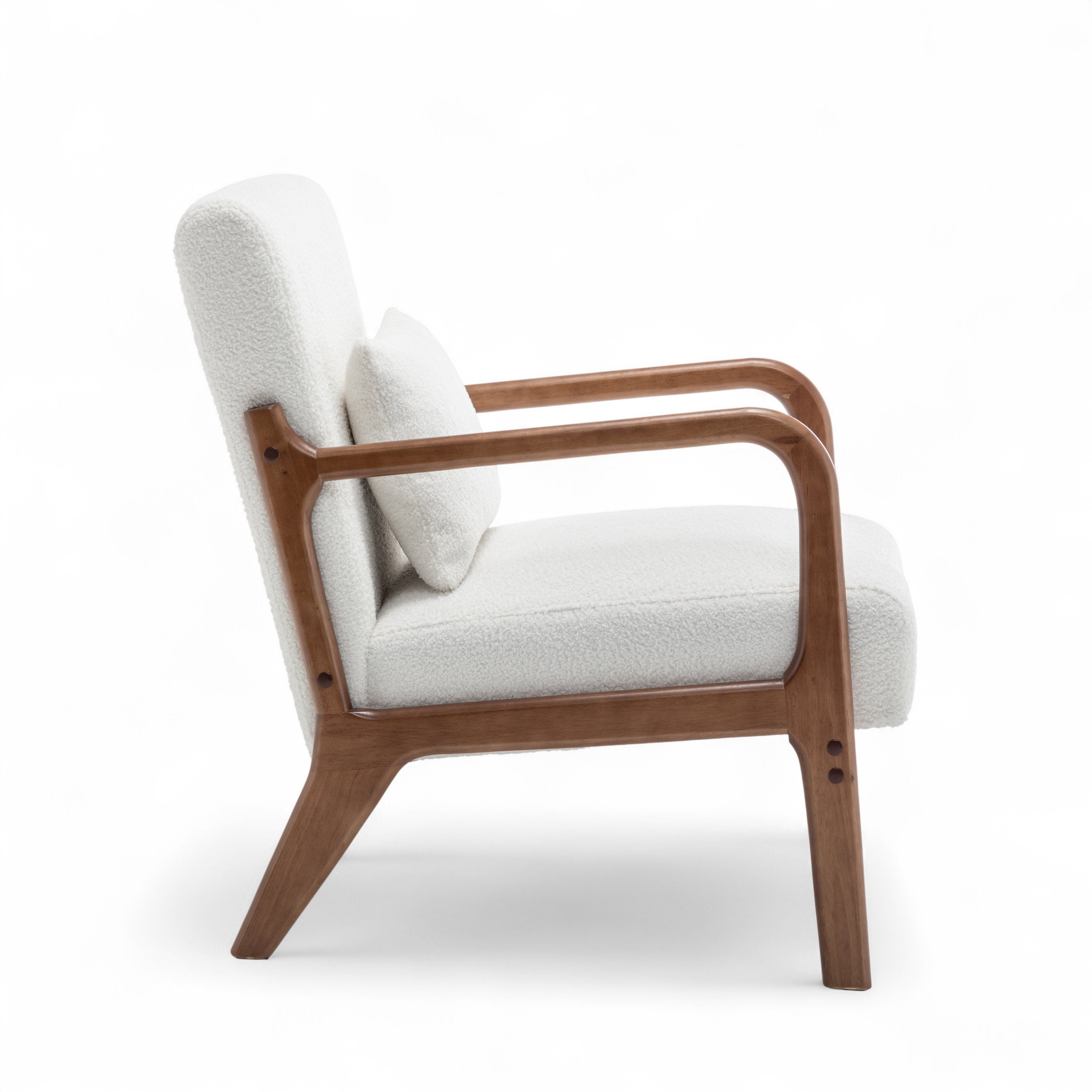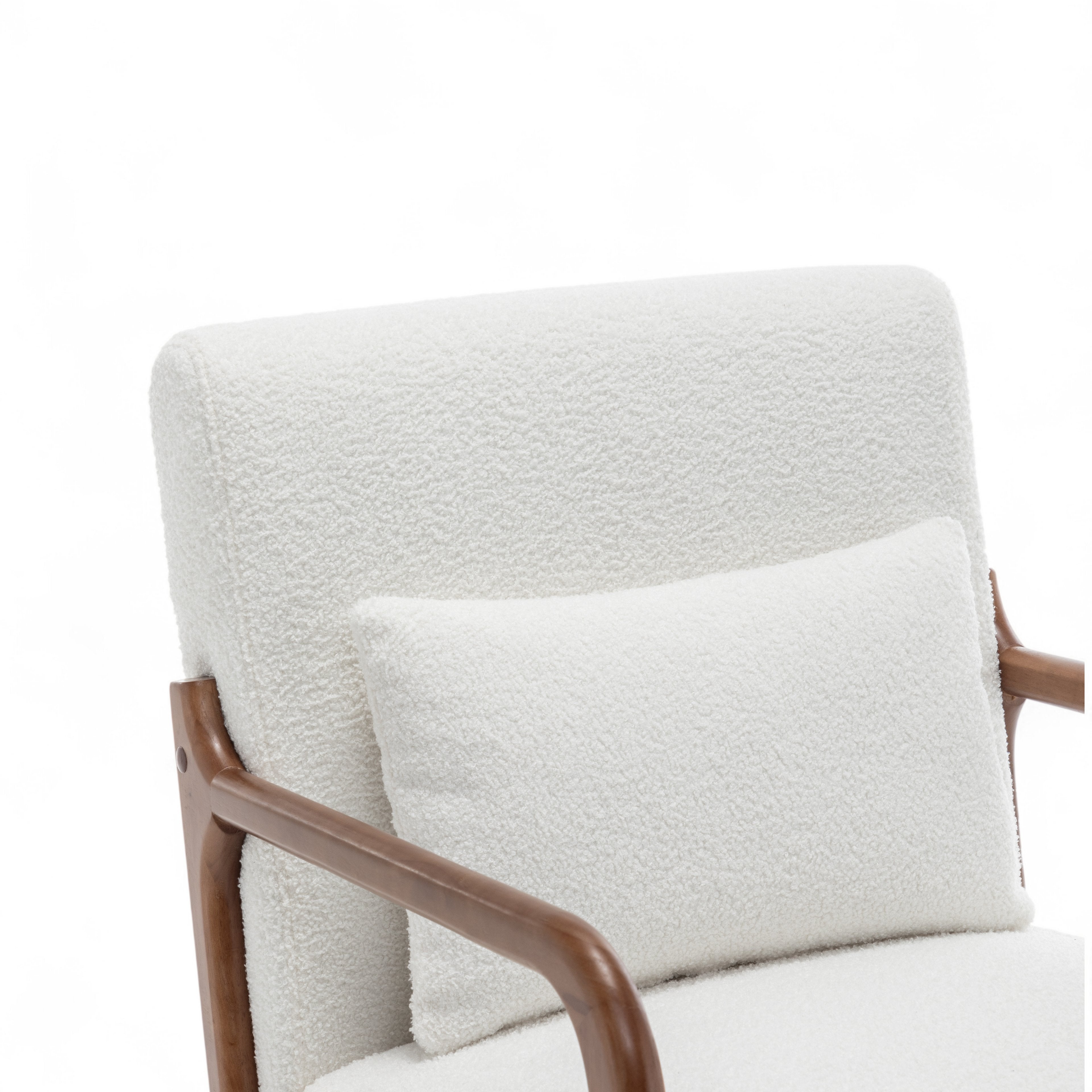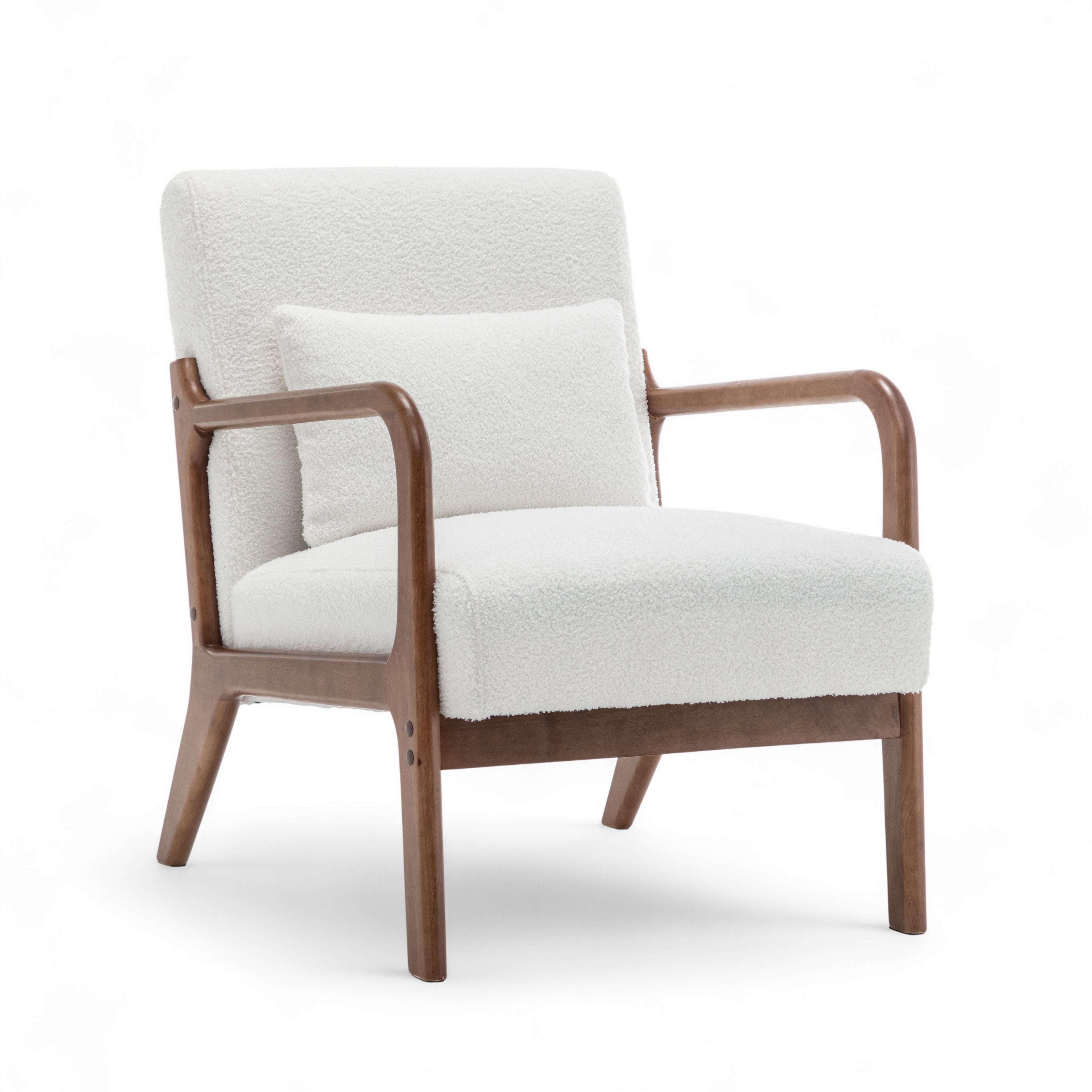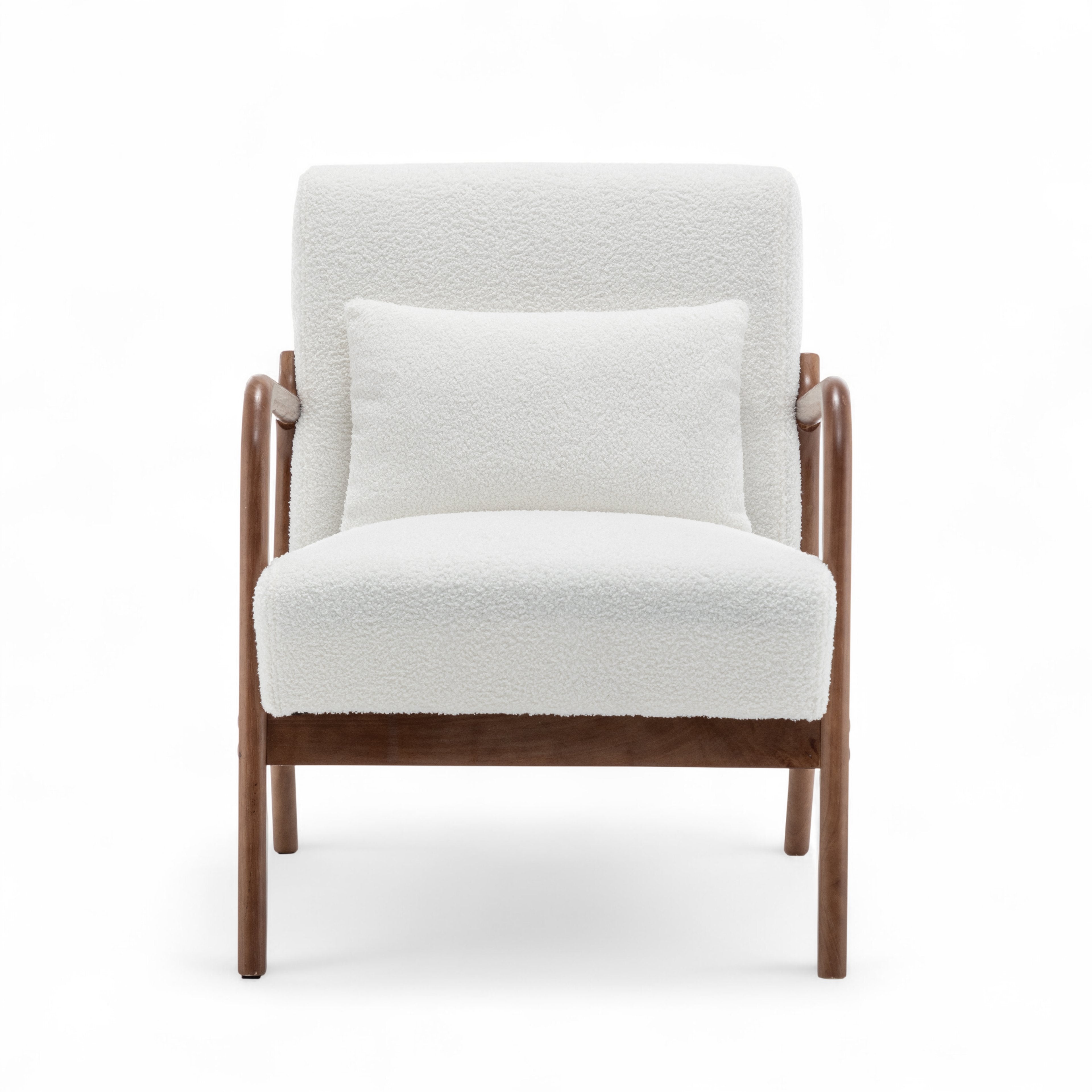 The Teddy Boucle Fabric White Hertford Accent Chair is perfect to use as an accent chair or occasional seating option in any room. The contrast between the bright upholstery and dark frame, along with the texture of the teddy fabric, is sure to catch the eye of guests, while the chair's versatile design and simple silhouette make it suitable for both modern and traditional settings. The accent cushion is included with the chair.