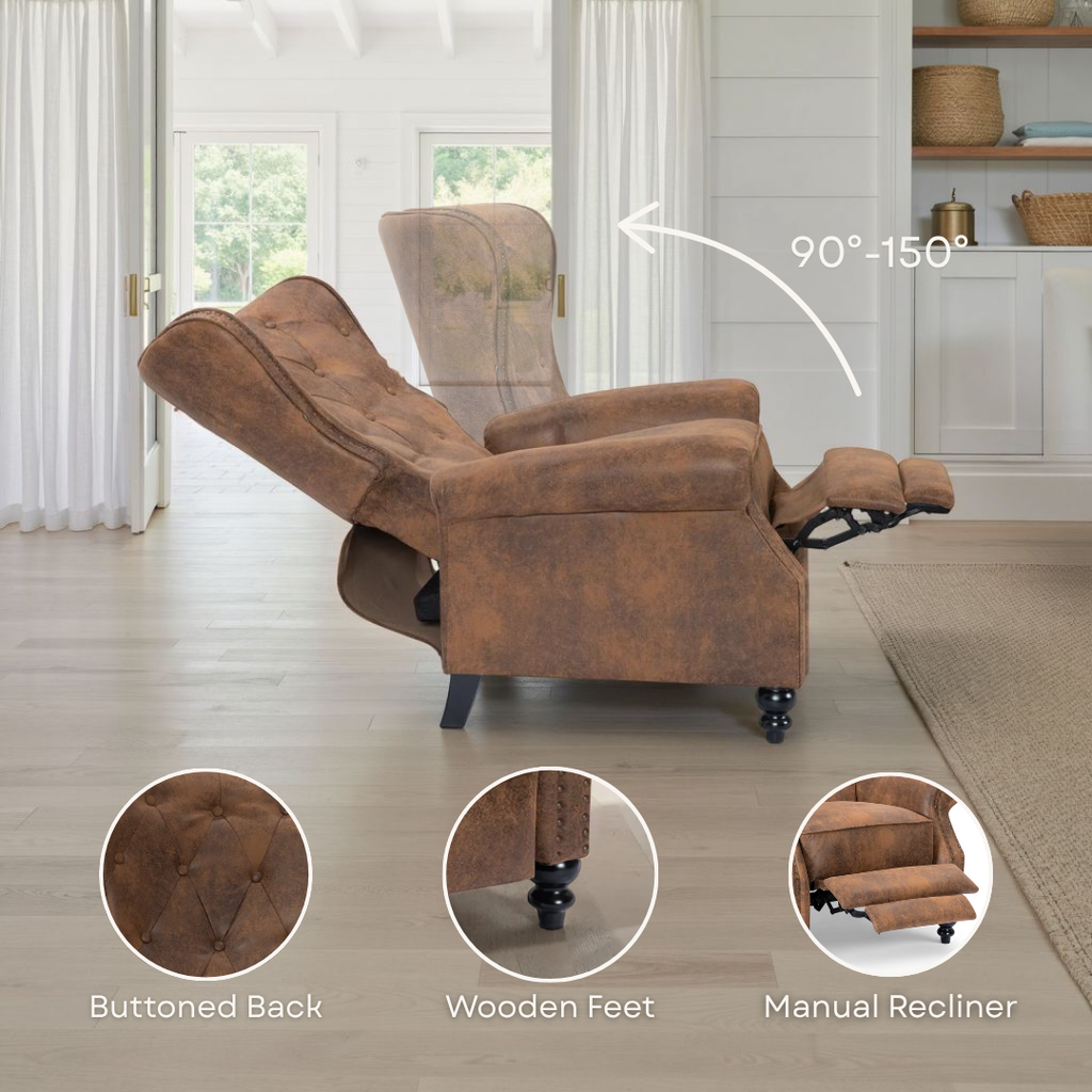 Faux Leather Suede Brown Buttoned Carmona Wingback Recliner Chair