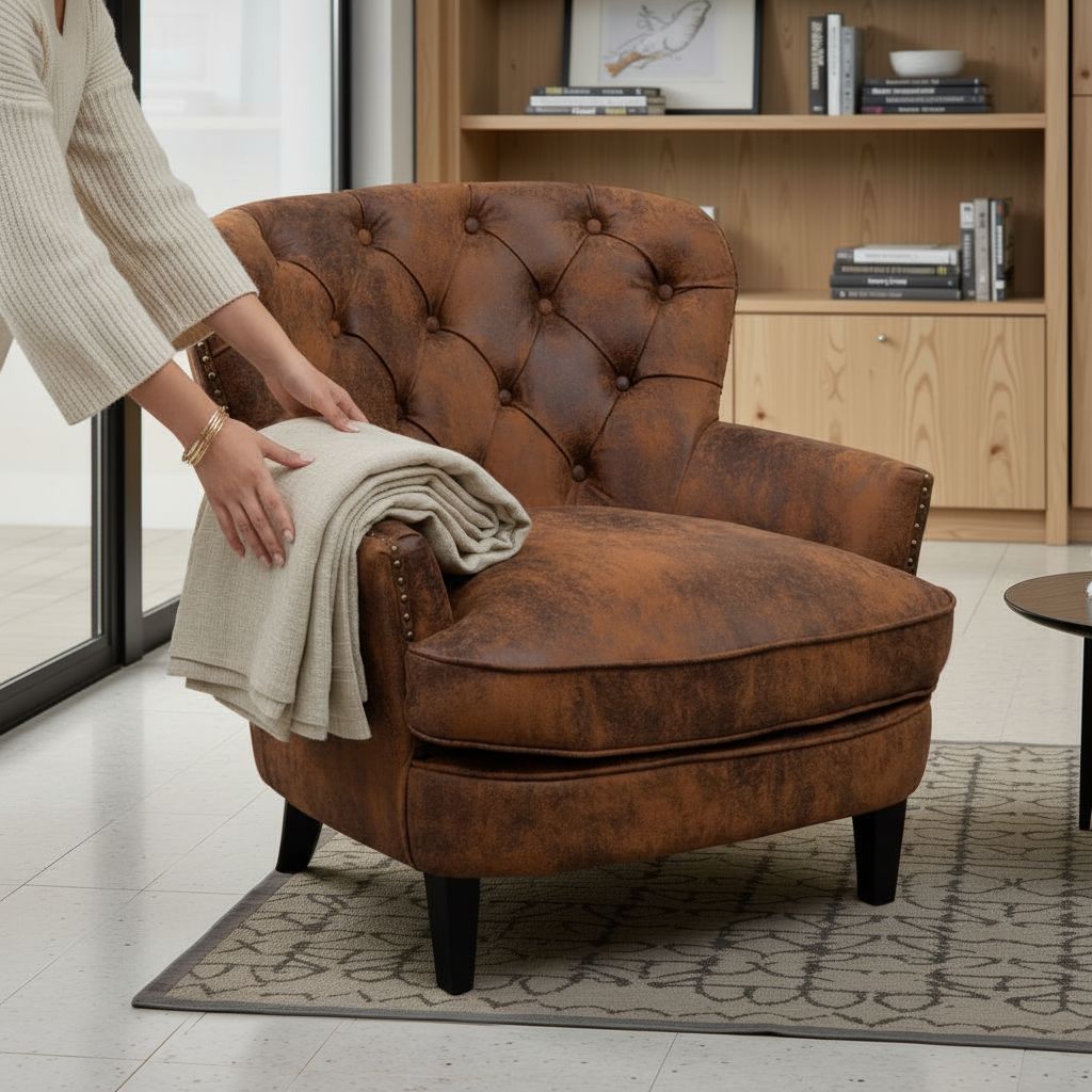 Faux Leather Suede Brown Buttoned Ava Accent Chair