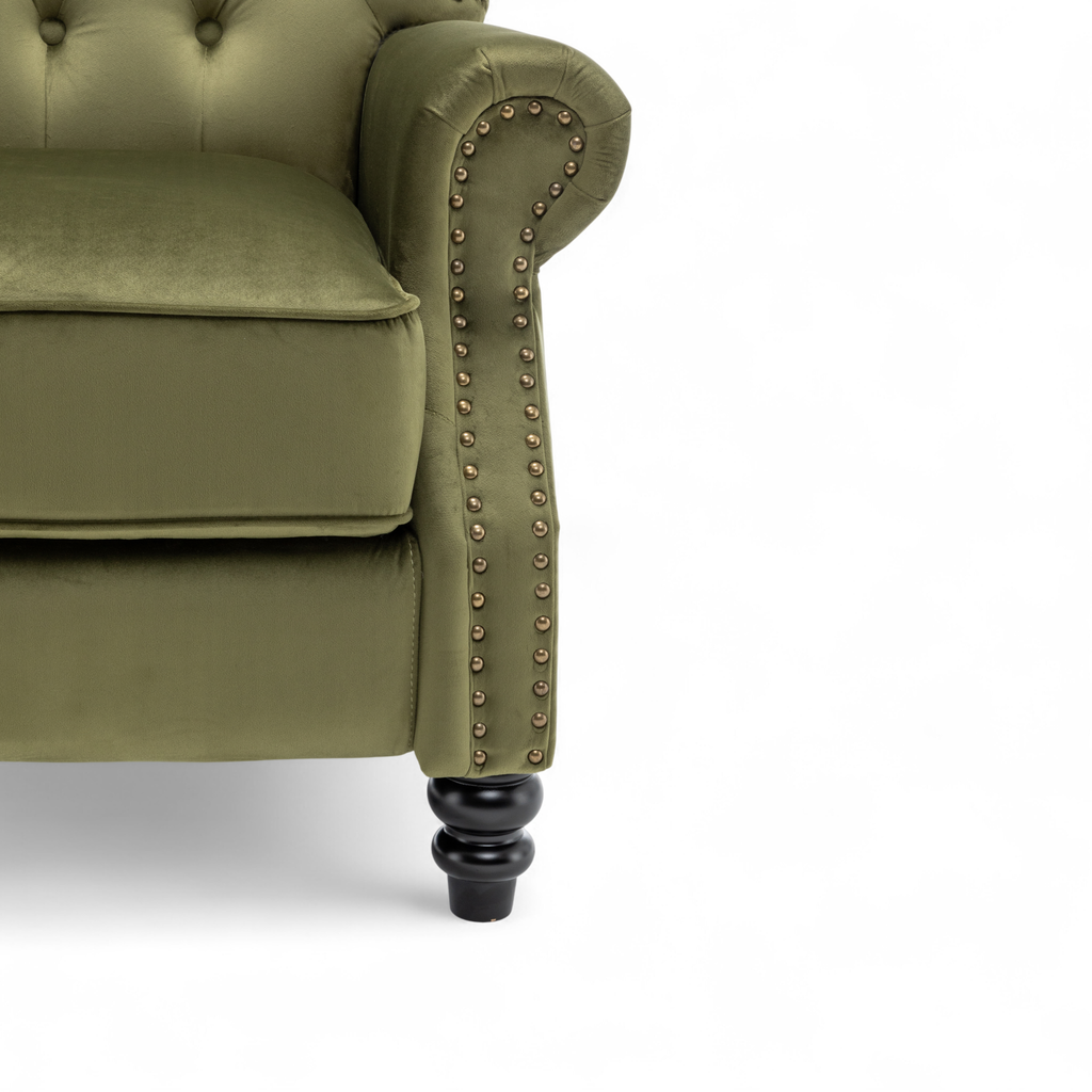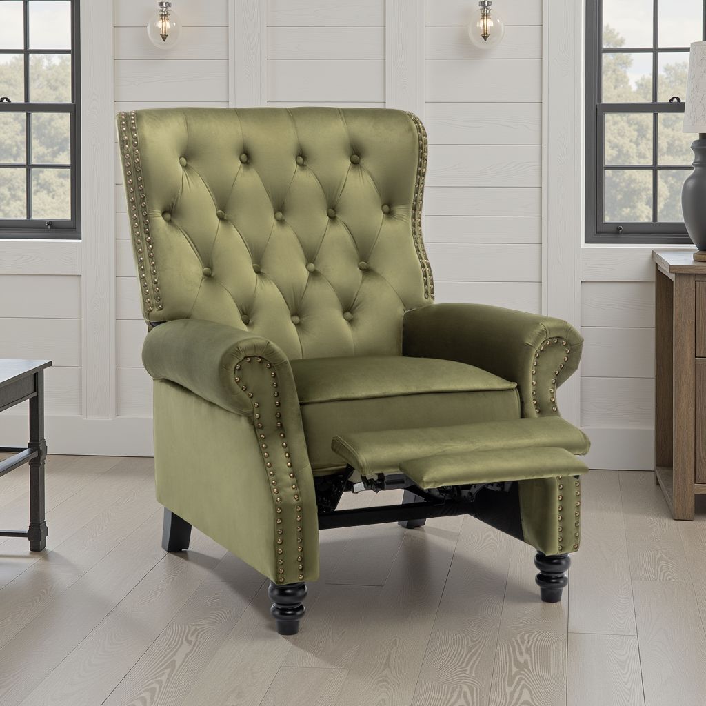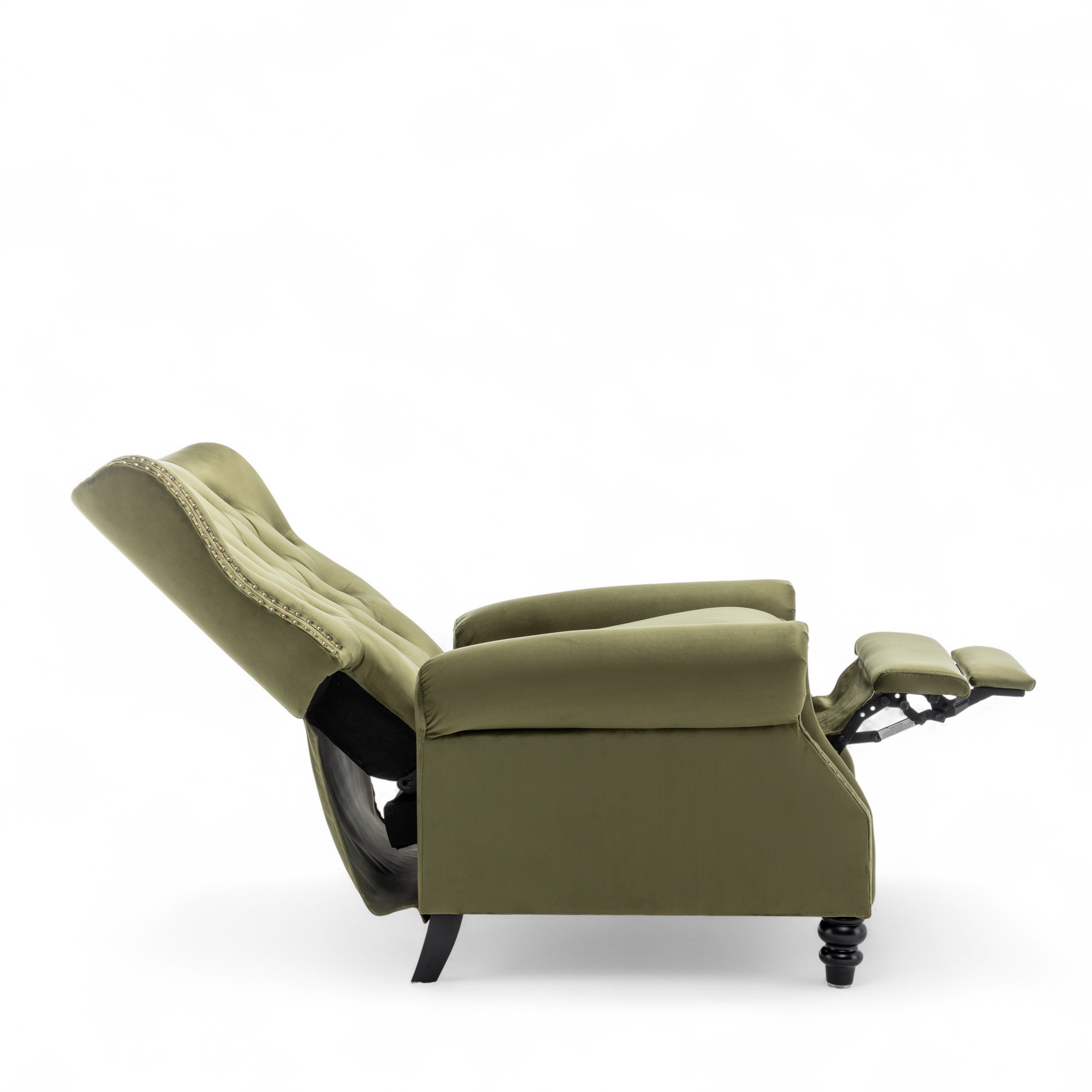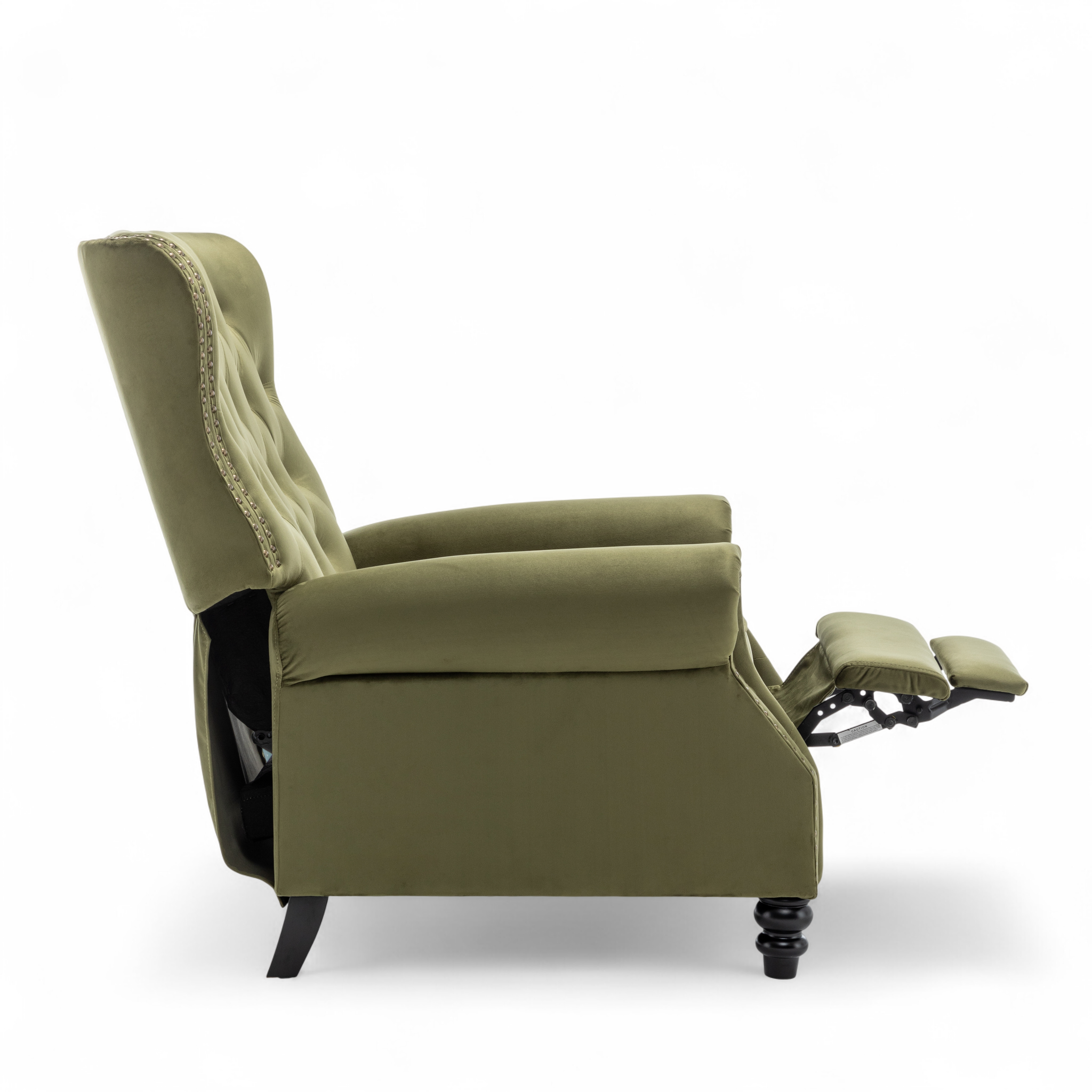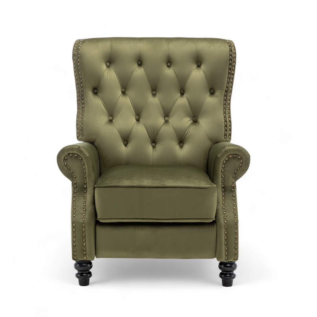 Velvet Sage Green Buttoned Carmona Wingback Recliner Chair