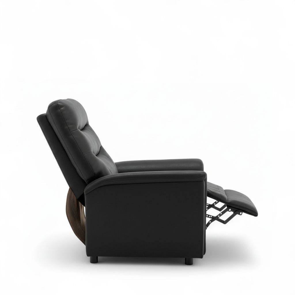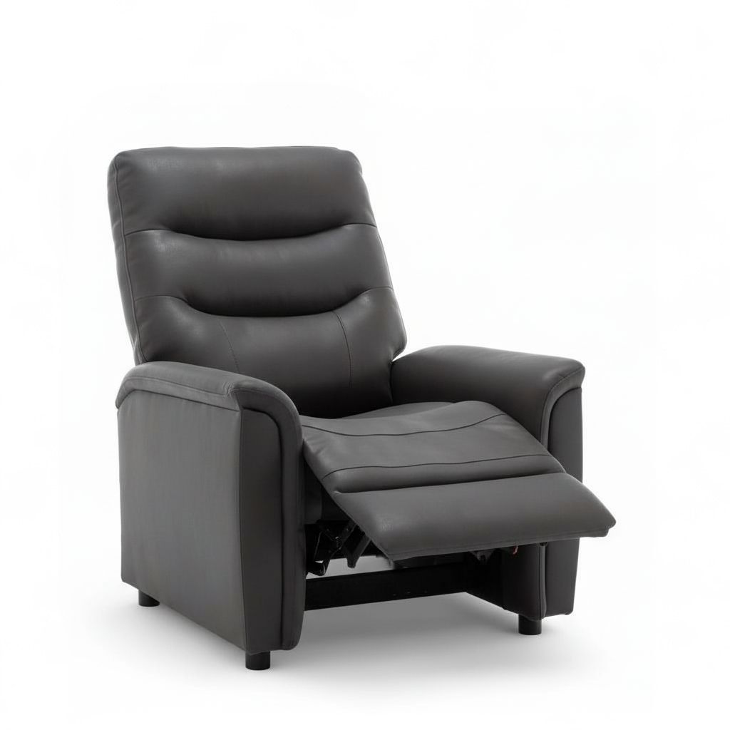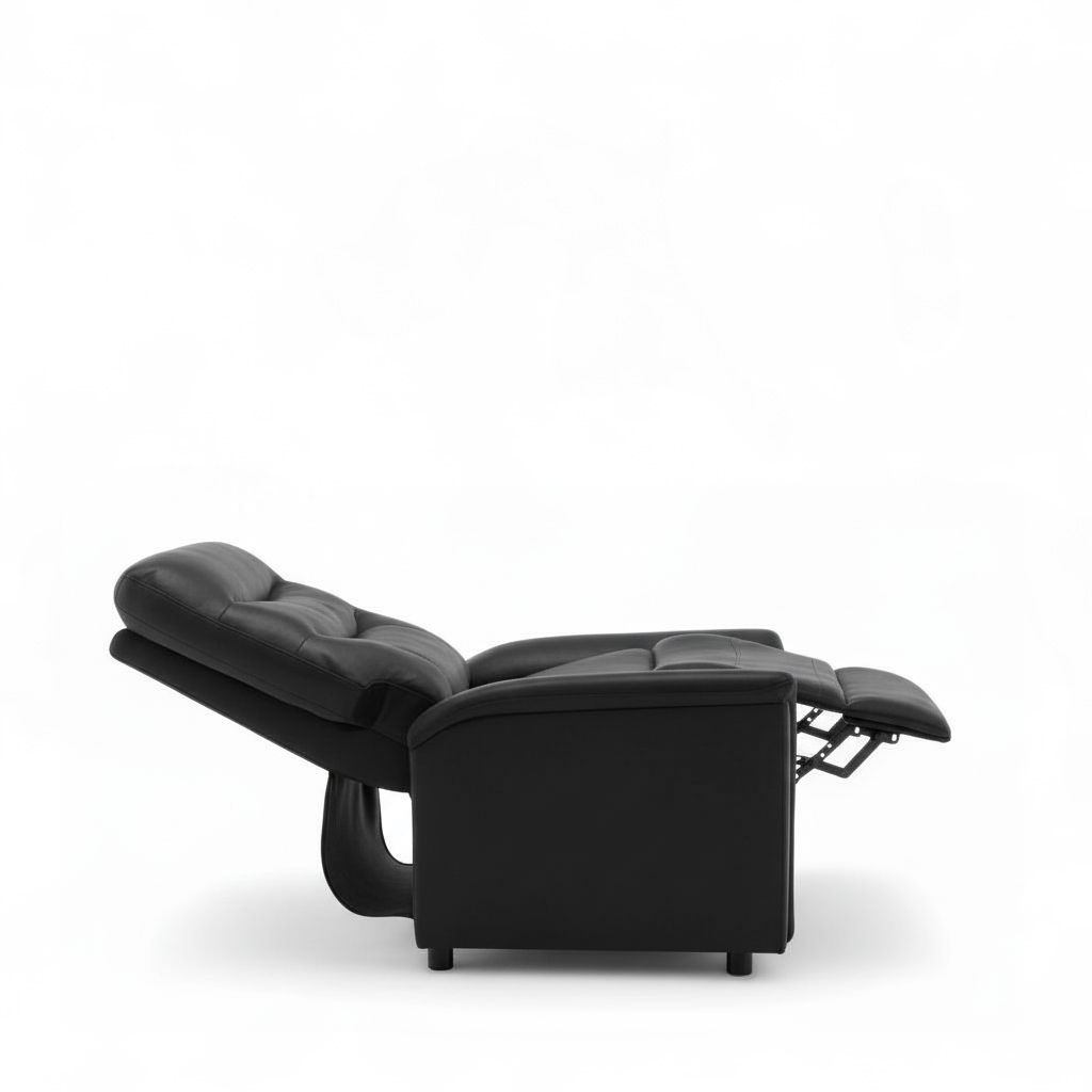 A modern, elegant, and simple recliner chair designed with style and comfort in mind. The Milazzo Recliner Chair showcases a durable and stylish faux leather upholstery in black finish. The reclining mechanism is manual and allows you to adjust your position. The slim silhouette of this chair is further enhanced by the straight and sharply defined outer profile, while the inside edges are soft and generously padded, prioritising comfort. The deep seat base is padded as well, guaranteeing comfort on daily use. Elegant, functional must-have piece to relax in.