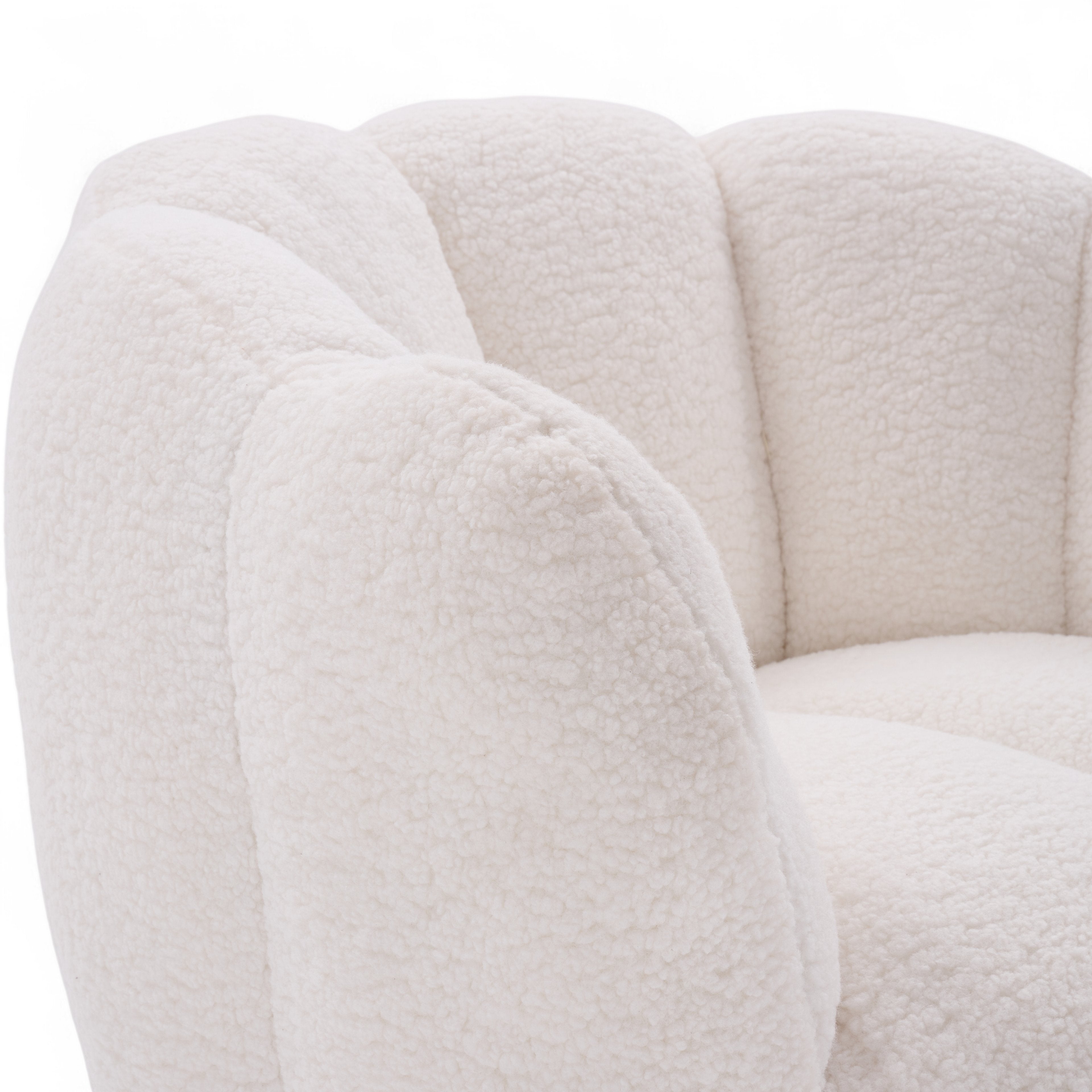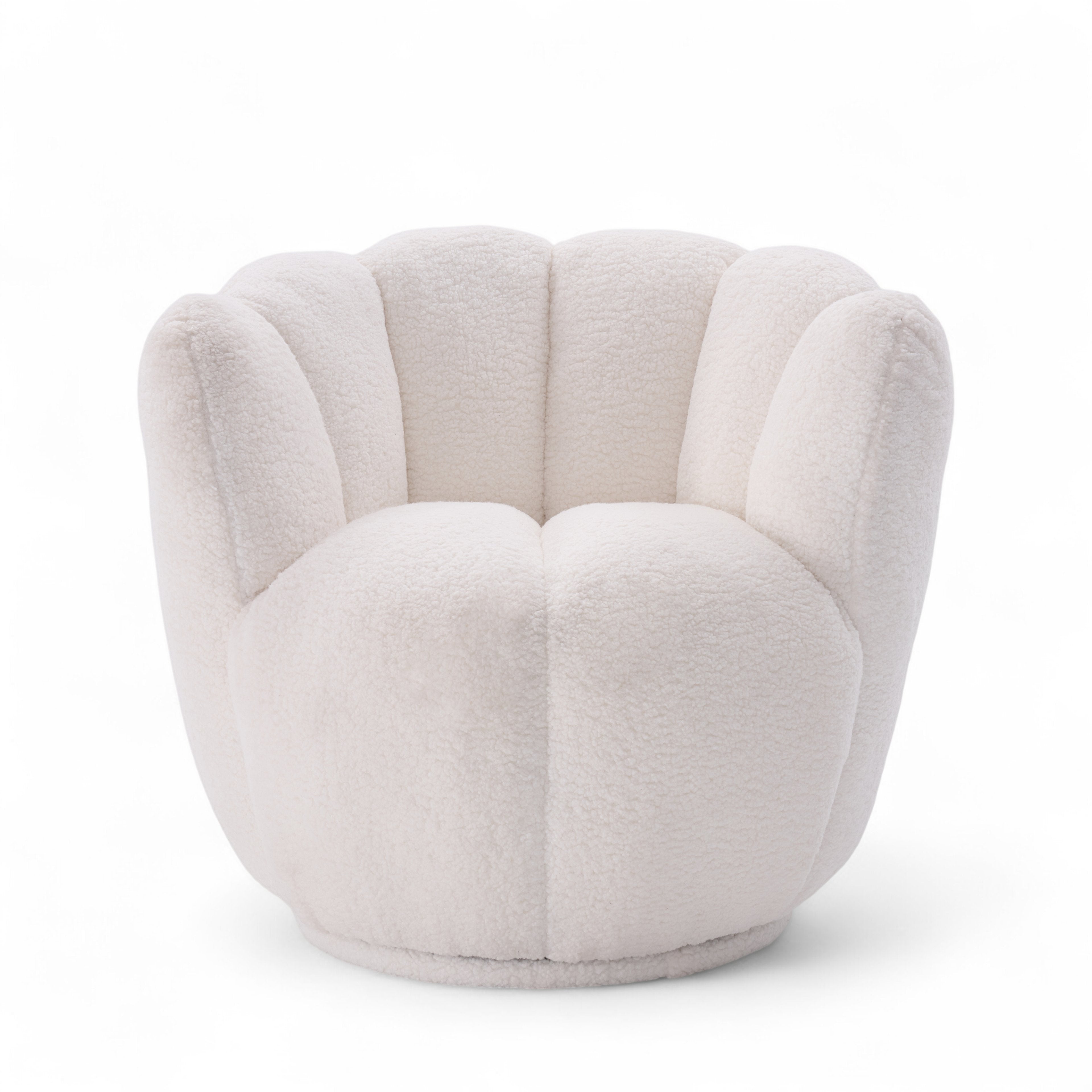Teddy Boucle Fabric White Naomi Scalloped Barrel Chair