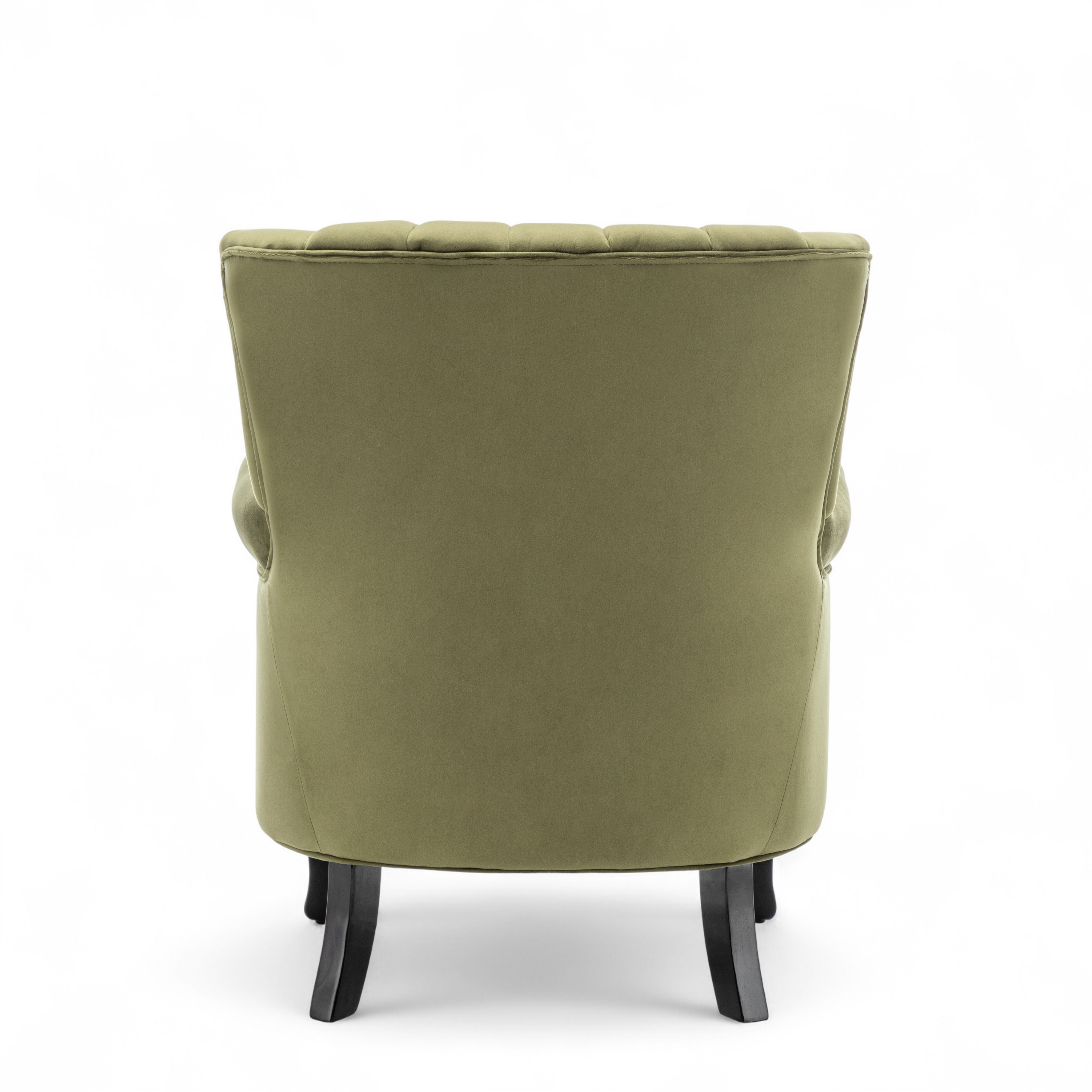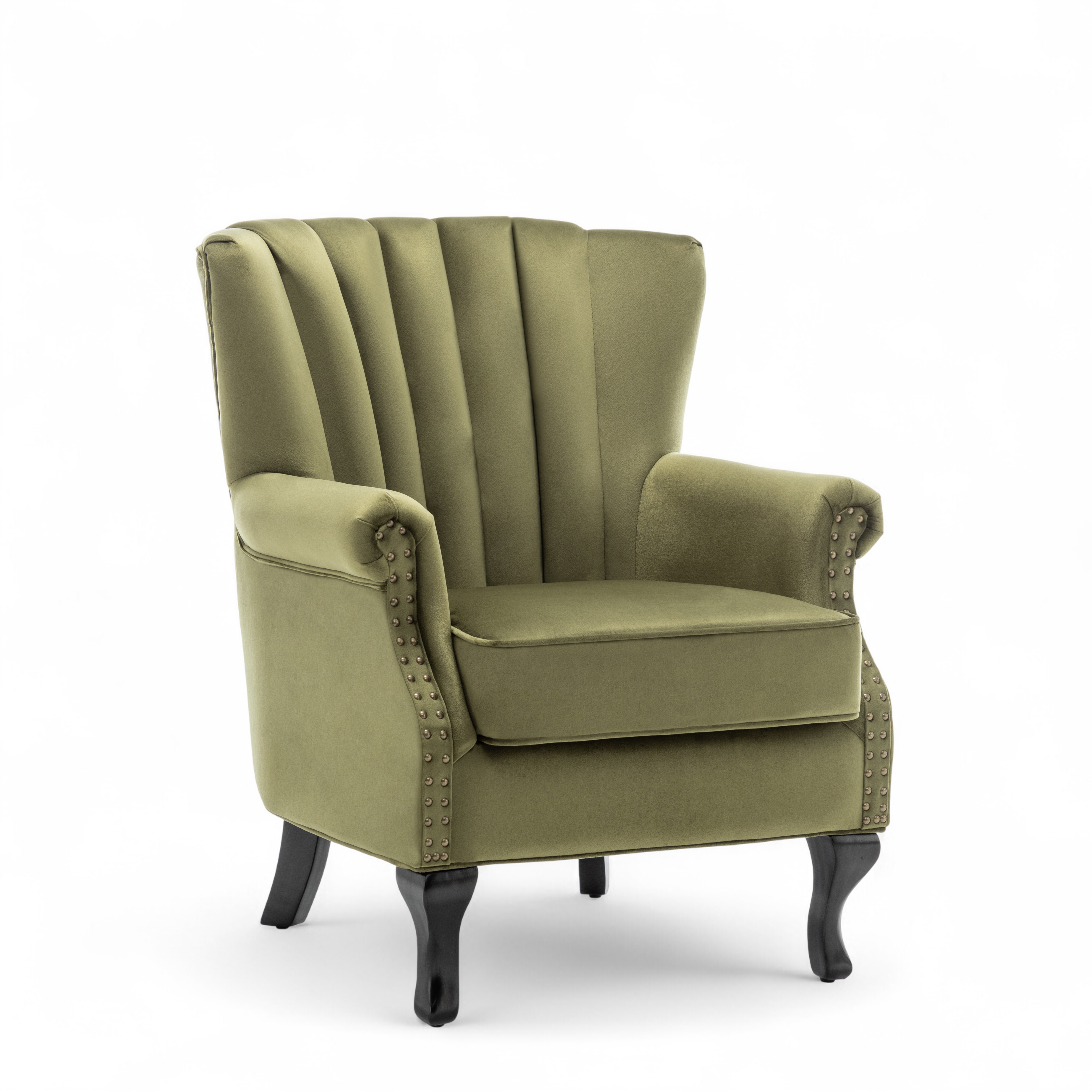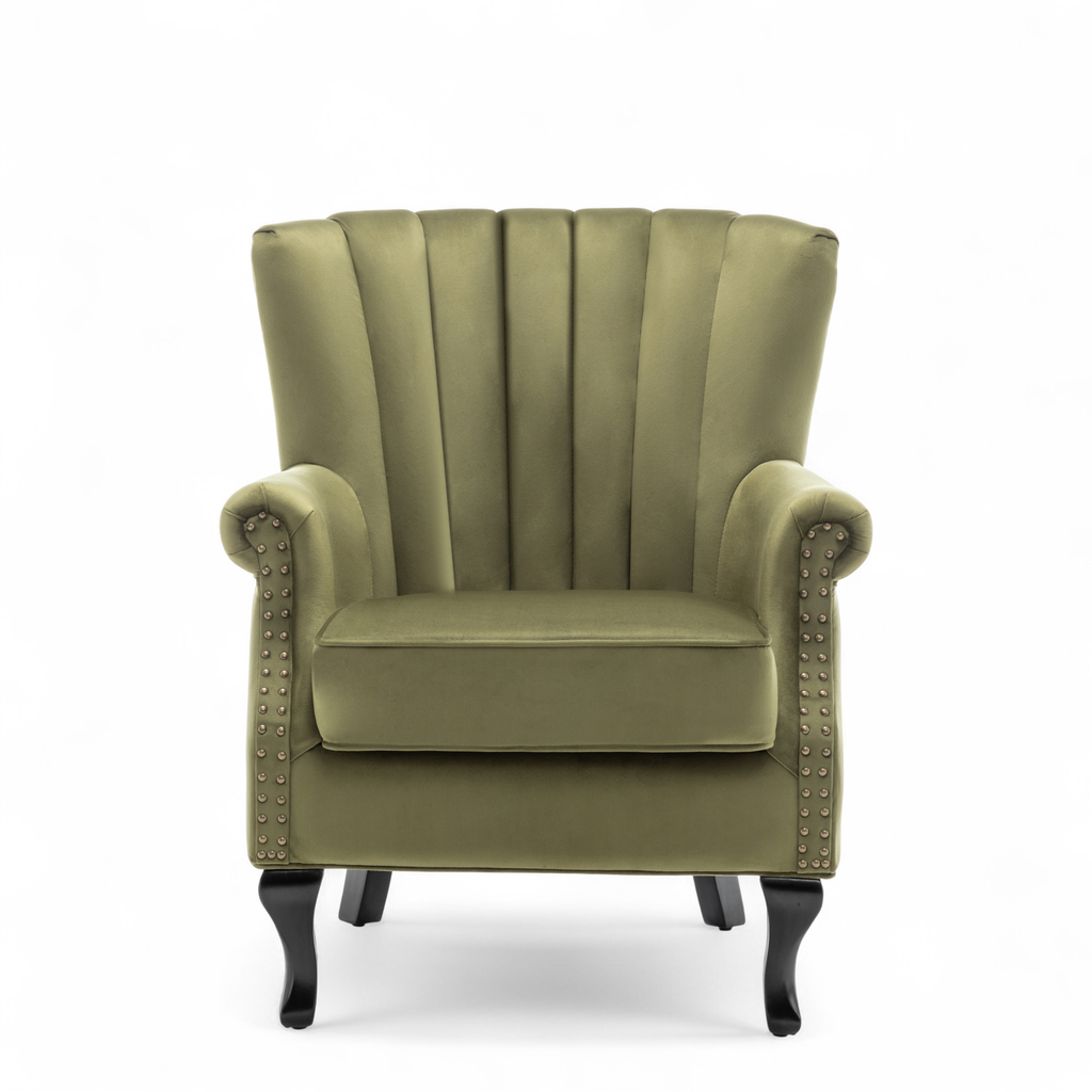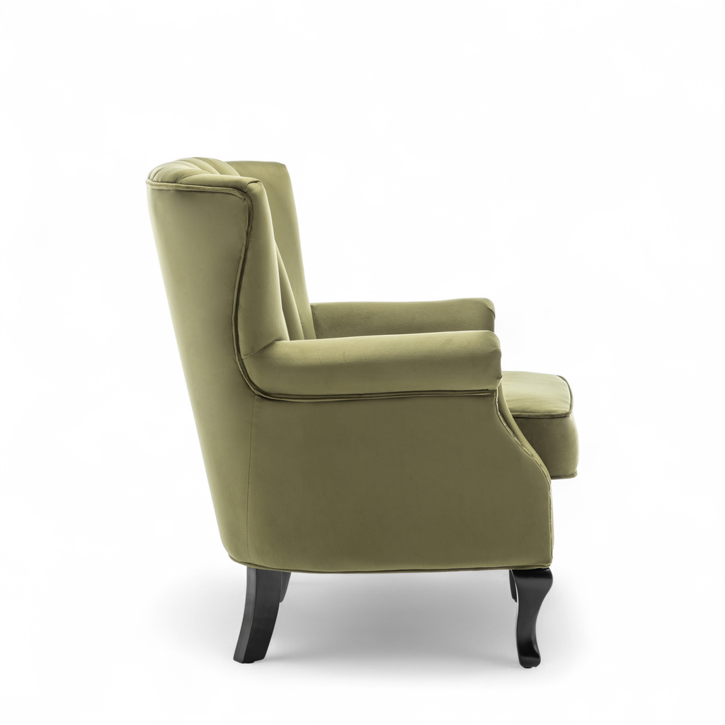 As a wingback chair, the Velvet Sage Green Jemma Accent Chair is a perfect choice for those looking to add a touch of elegance and sophistication to their home decor. Its compact size makes it perfect for use as an accent chair in any room. The chair's hardwood frame and elegant wooden feet add a touch of durability to the overall design, ensuring that it's built to last.